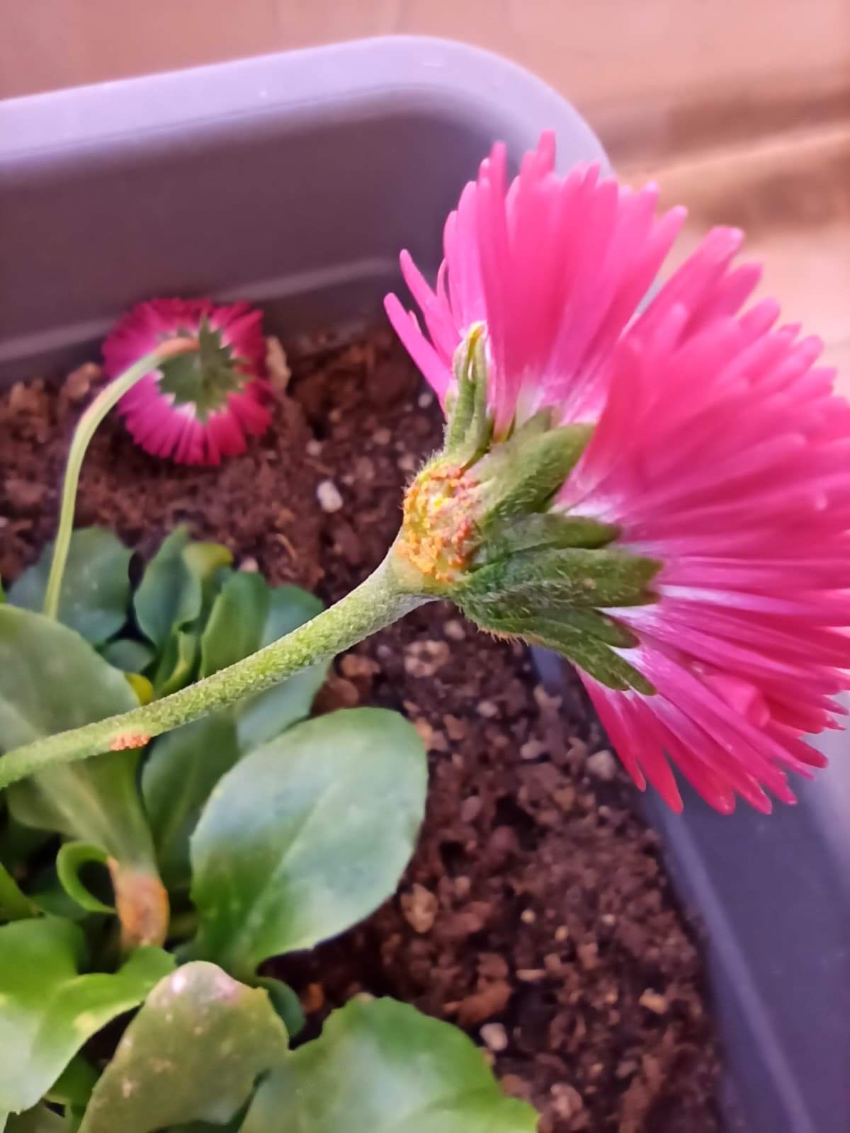 Καλησπέρα. Σήμερα παρατήρησα ότι το ένα λουλούδι που έχω στο μπαλκόνι μου παρουσιάζει αυτά τα κόκκινα στίγματα που φαίνονται στη φωτογραφία. Υπάρχουν στα "κλαδιά" στη βάση των λουλουδιών αλλά και στα φύλλα. Μπορεί κάποιος να με διαφωτίσει σχετικά με αυτή την ασθένεια και πως να την αντιμετωπίσω;