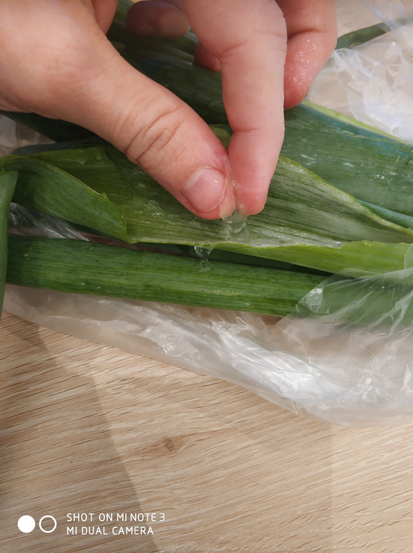Καλησπέρα σας! Καμιά φορά όταν παίρνω φρέσκα κρεμμυδάκια που είναι λίγο μεγάλα, τυγχάνει να έχουν μέσα έχουν μια αδιαφανή γλίτσα (πατήστε πάνω στις φωτογραφίες, ούτως ώστε να τις δείτε με μεγαλύτερες διαστάσεις). Είναι φυσιολογικό αυτό; Στα μικρά δεν βλέπω να υπάρχει. Η αλήθεια είναι ότι, όποτε το παίρνω χαμπάρι, το πετάω, διότι αηδιάζω. Για πείτε μου, λοιπόν: Είναι φυσιολογικό ή όχι;
