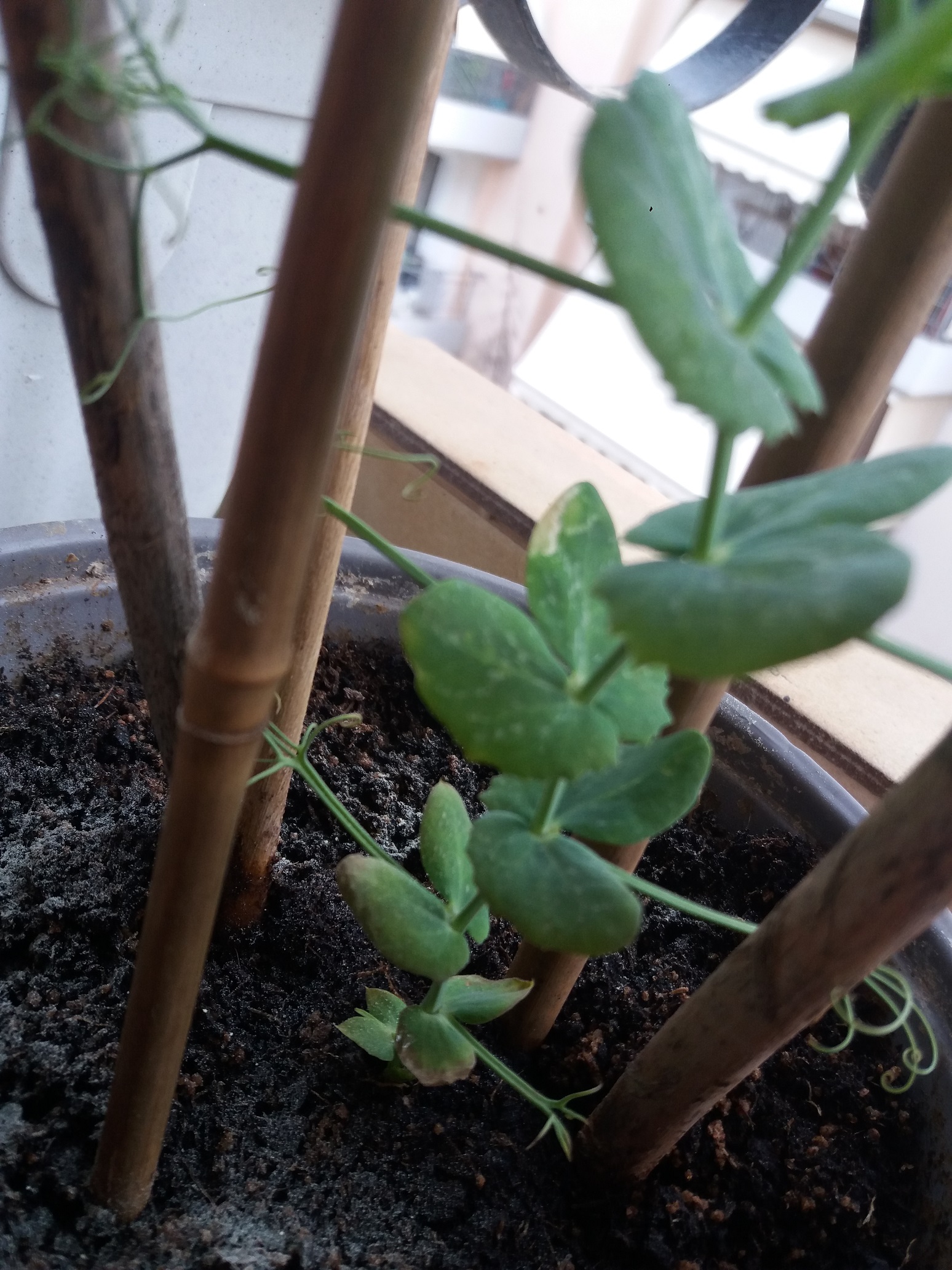 Έχω φυτέψει ένα σπόρο μπιζελιάς σε γλάστρα στο μπαλκόνι μου. Έχει μεγαλώσει ικανοποιητικά, όμως την τελευταία εβδομάδα έχω παρατηρήσει άσπρα στίγματα στα φύλλα, ενώ επίσης τα κάτω φύλλα έχουν εμφανίσει κάποιες καφέ περιοχές στο εξωτερικό τους.
